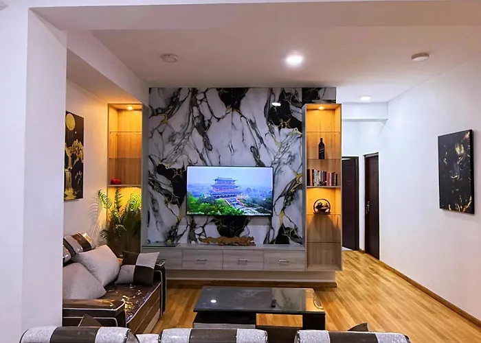 Staying at the spacious The Crazys Apartment Kathmandu, guests can relax on a terrace a 10-minute drive from the Kathmandu Durbar Square. Wi-Fi and free private parking are also available at this apartment.